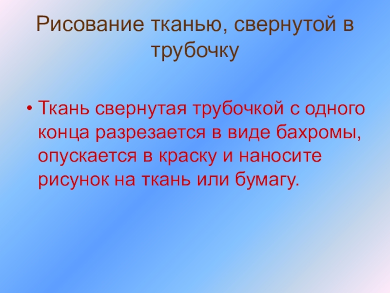 Слайд 42Рисование тканью, свернутой в трубочку