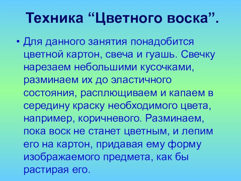 Слайд 37 Техника “Цветного воска”.