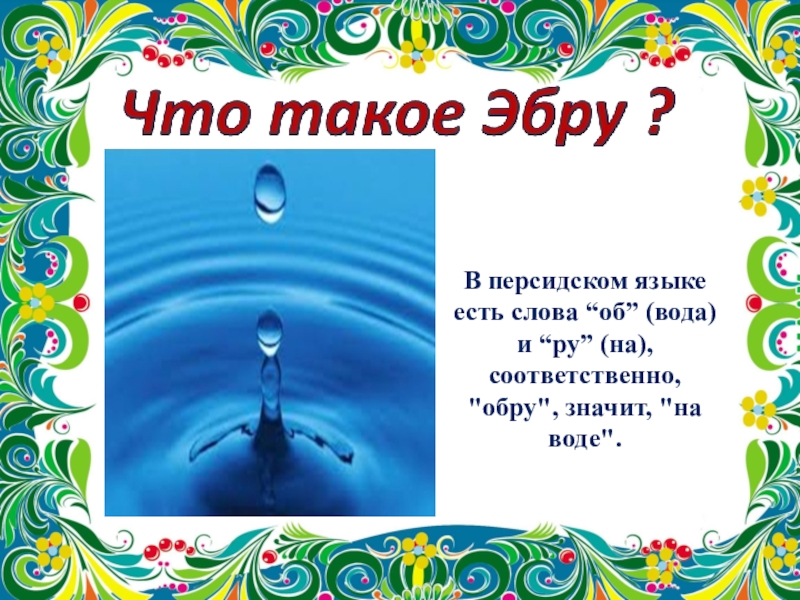 В персидском языке есть слова “об” (вода) и “ру” (на), соответственно, "обру", значит, "на воде".