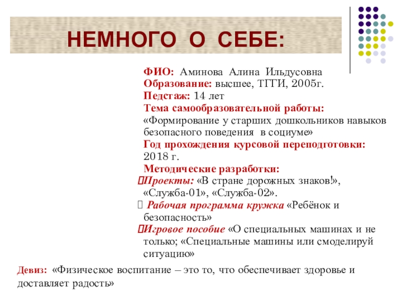 Девиз: «Физическое воспитание – это то, что обеспечивает здоровье и доставляет радость»