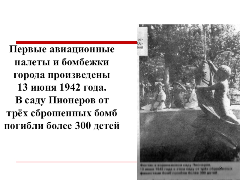 трагедия 13 июня 1942 года в саду Пионеров в г. Воронеж