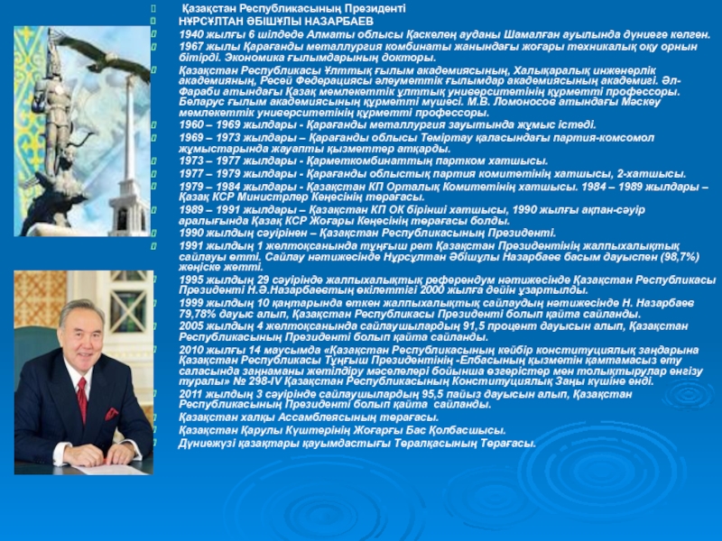 1990 жылдың сәуірінен – Қазақстан Республикасының Президенті.
