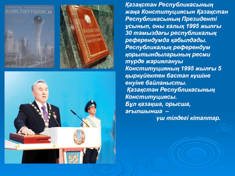 1995 жылғы 30 тамыздағы республикалық референдумда қабылдады.