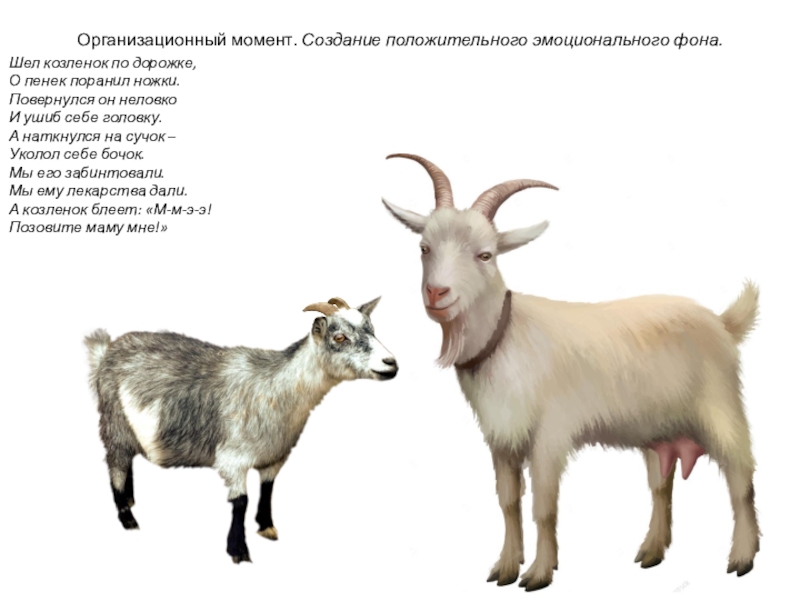 Какой козленок по величине и по высоте? (Маленький, низкий)