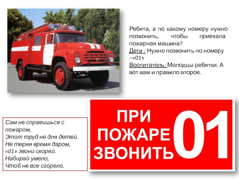Ребята, а по какому номеру нужно позвонить, чтобы приехала пожарная машина?