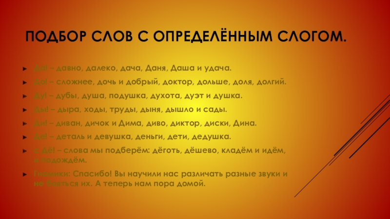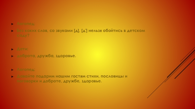 Без каких слов, со звуками [д], [д'] нельзя обойтись в детском