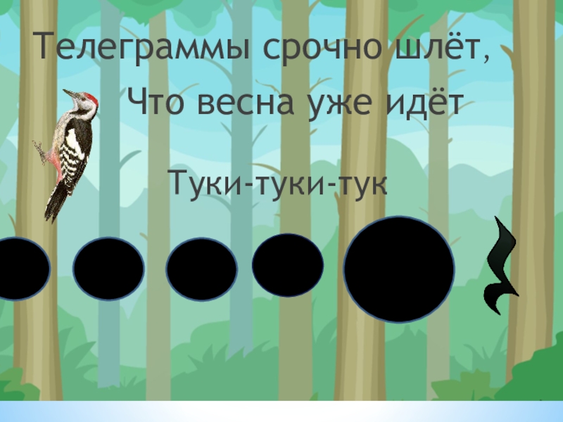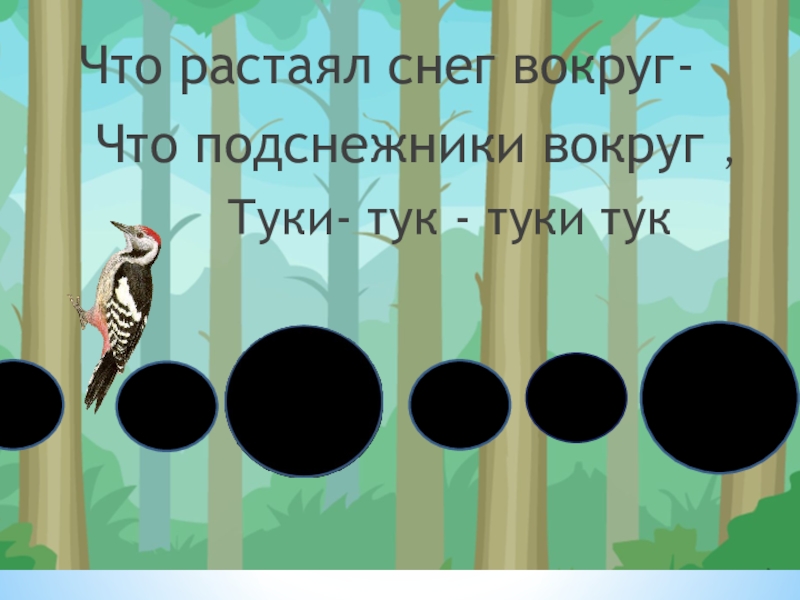 Дятел сел на толстый сукТук да тук Что растаял снег вокруг-  Что подснежники вокруг ,