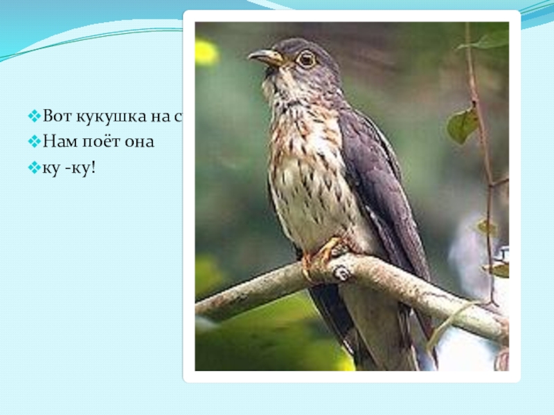 Слайд 19Вот кукушка на суку