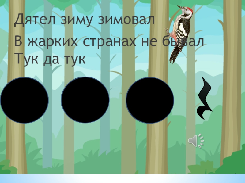 Слайд 15Дятел сел на толстый сук