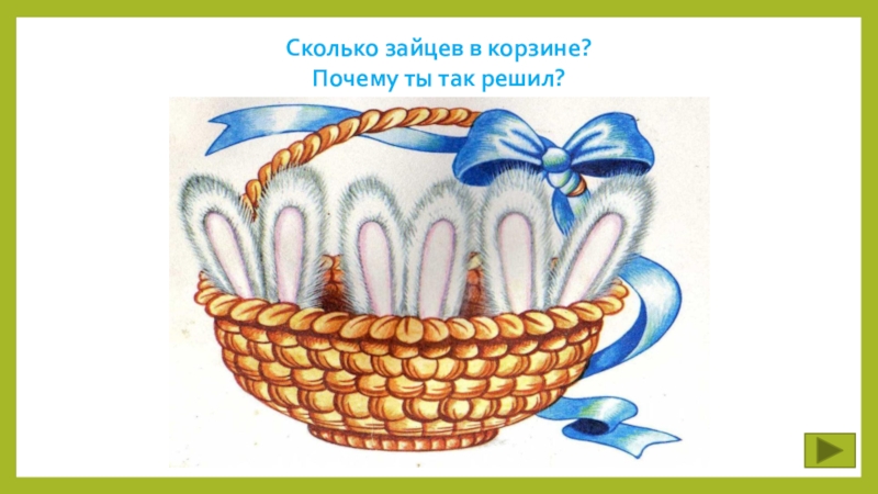 Слайд 2Сколько зайцев в корзине? Почему ты так решил?