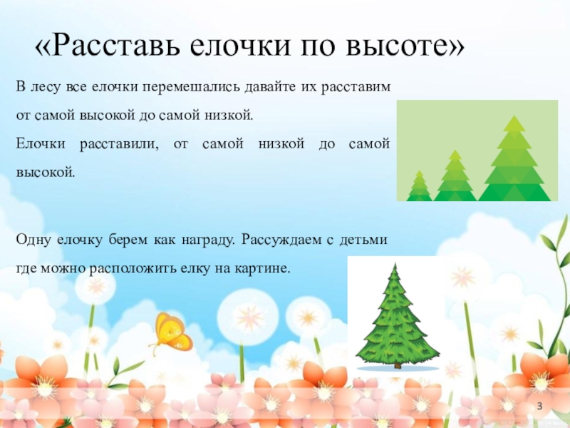 Одну елочку берем как награду. Рассуждаем с детьми где можно расположить елку на картине.
