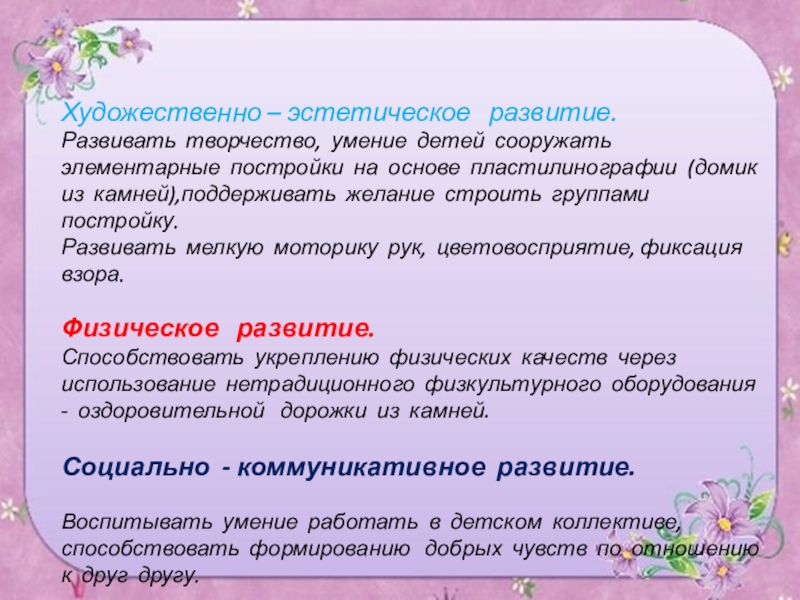 на основе пластилинографии (домик из камней),поддерживать желание строить группами постройку.