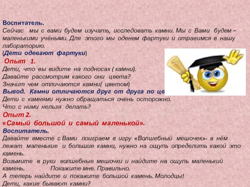 Сейчас мы с вами будем изучать, исследовать камни. Мы с