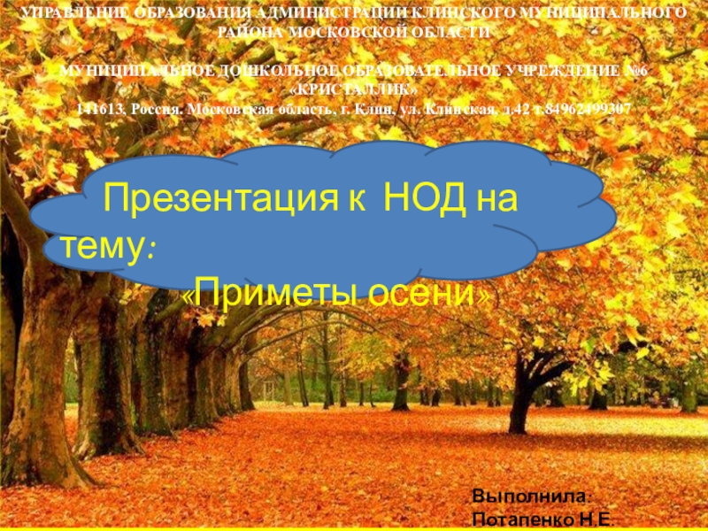 141613, Россия. Московская область, г. Клин, ул. Клинская, д.42 т.84962499307