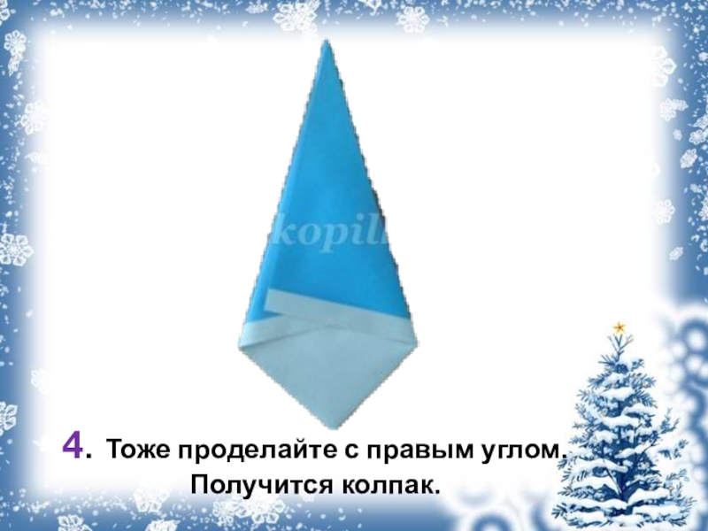 Слайд 6 4. Тоже проделайте с правым углом. Получится колпак.