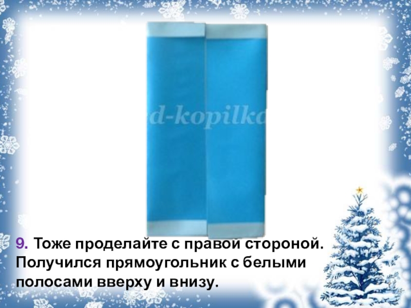 Слайд 119. Тоже проделайте с правой стороной.  Получился прямоугольник с белыми полосами вверху