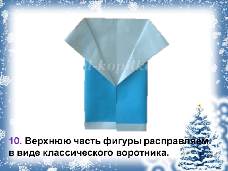 Слайд 1210. Верхнюю часть фигуры расправляем в виде классического воротника.