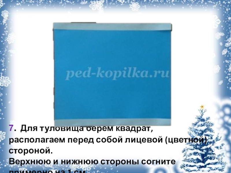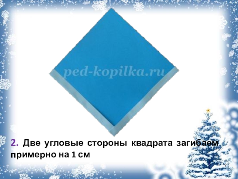 Слайд 42. Две угловые стороны квадрата загибаем примерно на 1 см