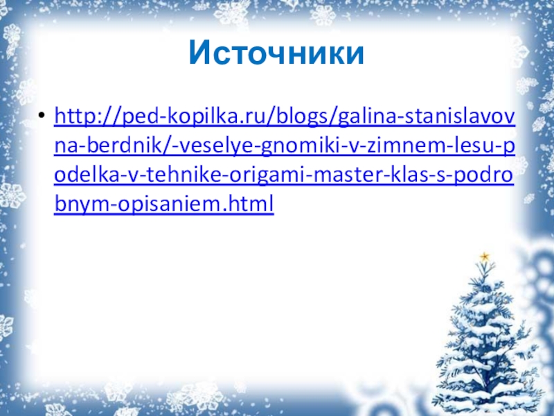 Источникиhttp://ped-kopilka.ru/blogs/galina-stanislavovna-berdnik/-veselye-gnomiki-v-zimnem-lesu-podelka-v-tehnike-origami-master-klas-s-podrobnym-opisaniem.html