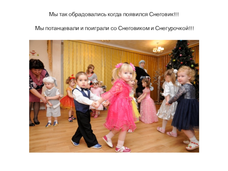 Слайд 6Мы так обрадовались когда появился Снеговик!!! Мы потанцевали и поиграли со