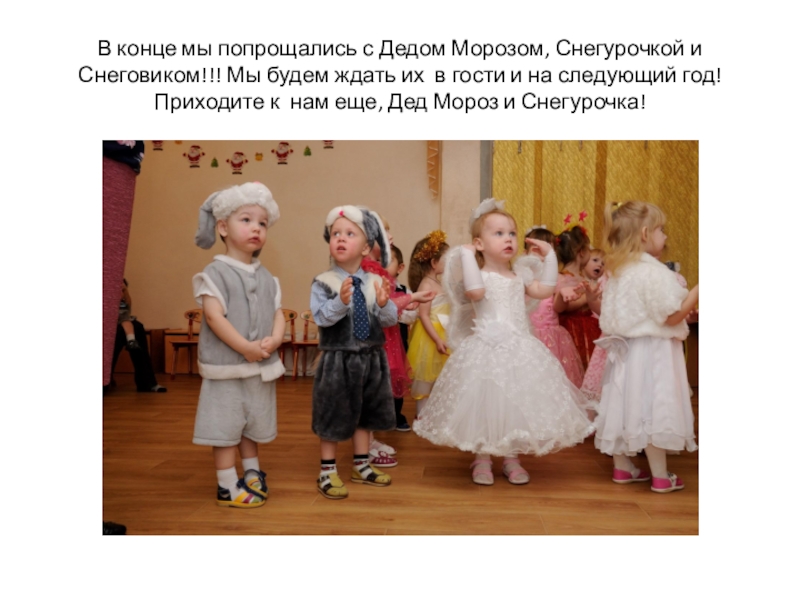 будем ждать их в гости и на следующий год! Приходите к нам еще, Дед Мороз и Снегурочка!