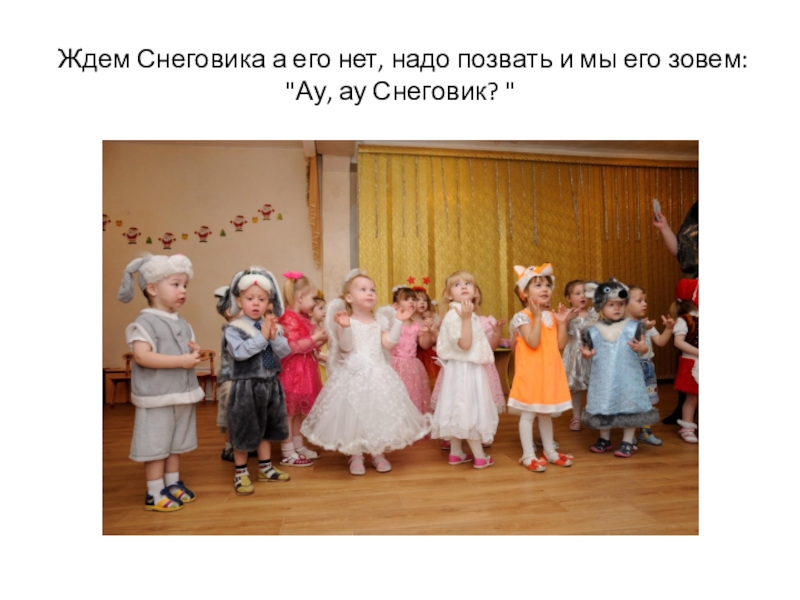 Слайд 5 Ждем Снеговика а его нет, надо позвать и мы его