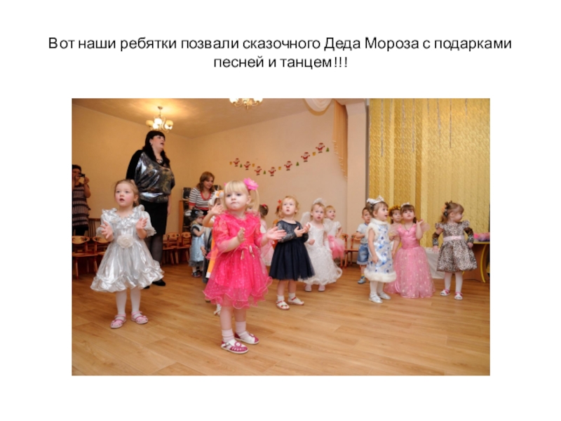 Слайд 15Вот наши ребятки позвали сказочного Деда Мороза с подарками песней и