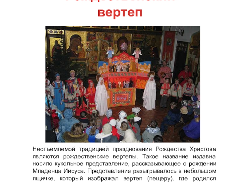 издавна носило кукольное представление, рассказывающее о рождении Младенца Иисуса. Представление разыгрывалось в небольшом ящичке, который изображал вертеп (пещеру), где родился Спаситель.