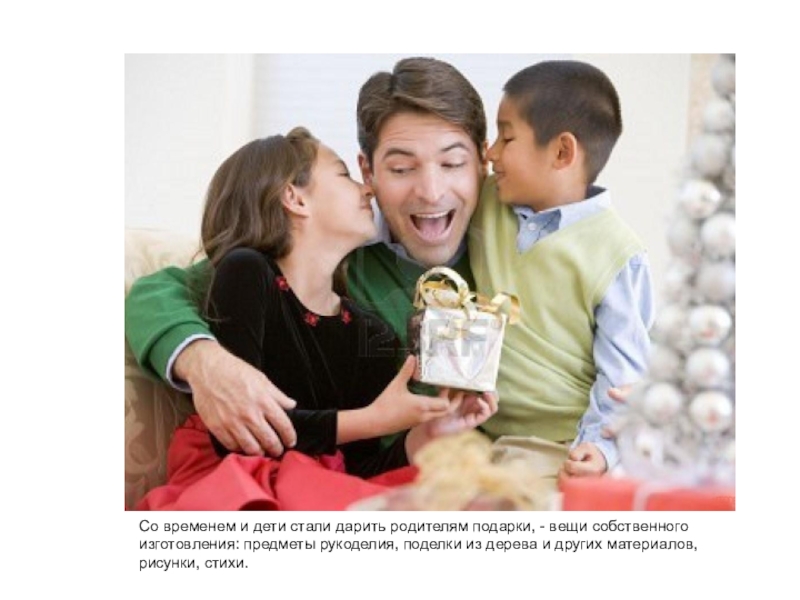 Слайд 11Со временем и дети стали дарить родителям подарки, - вещи собственного