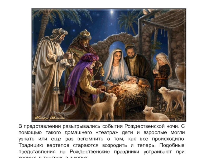 дети и взрослые могли узнать или еще раз вспомнить о том, как все происходило. Традицию вертепов стараются возродить и теперь. Подобные представления на Рождественские праздники устраивают при храмах, в театрах, в школах.