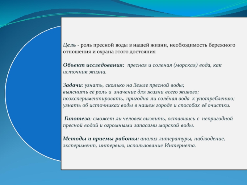 Презентация, доклад НПК пресная вода - источник жизни