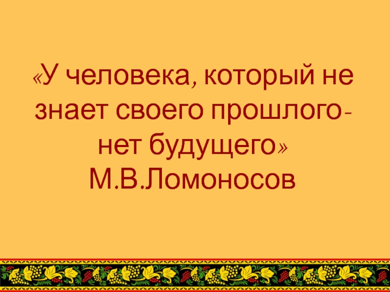 «У человека, который не знает своего прошлого- нет будущего» М.В.Ломоносов
