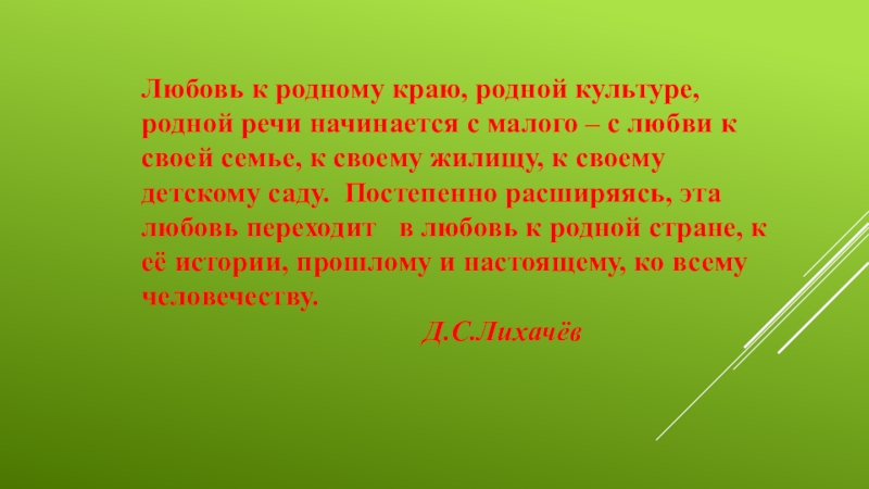 Слайд 2Любовь к родному краю, родной культуре, родной речи начинается с малого