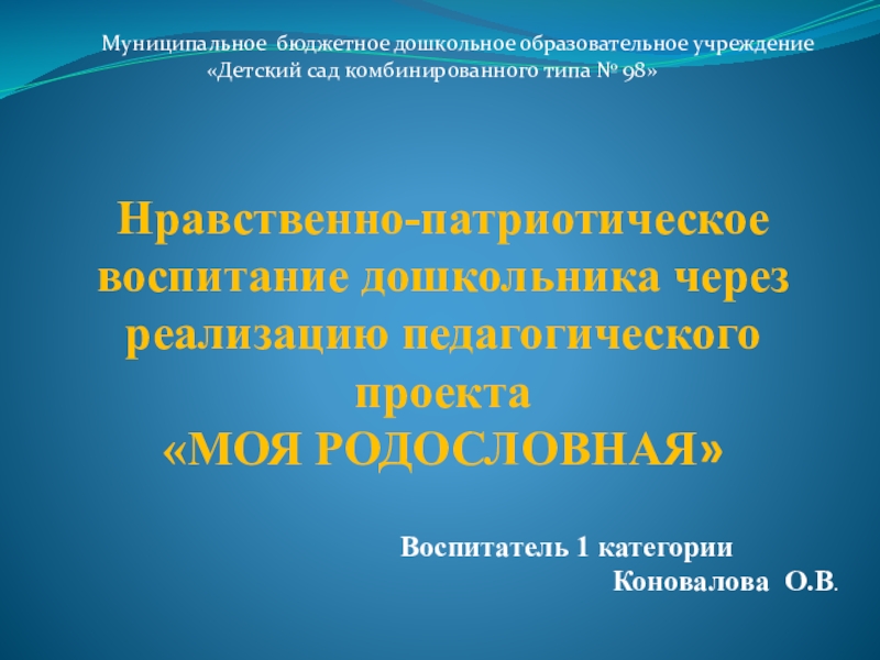 Нравственно-патриотическое воспитание дошкольника через реализацию педагогического проекта