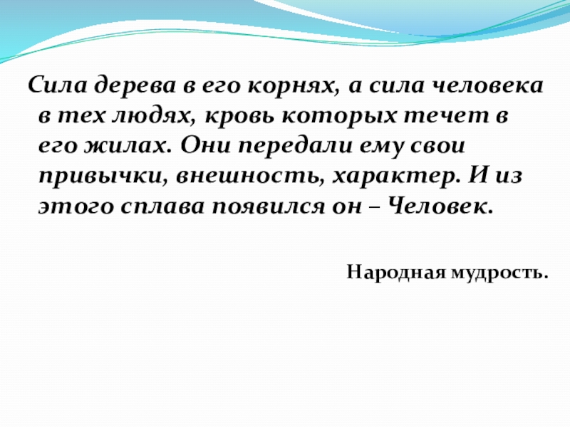 Слайд 2 Сила дерева в его корнях, а сила человека в тех