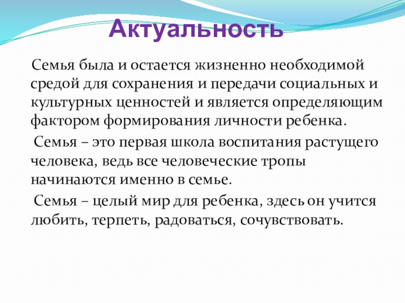 Семья была и остается жизненно необходимой средой для