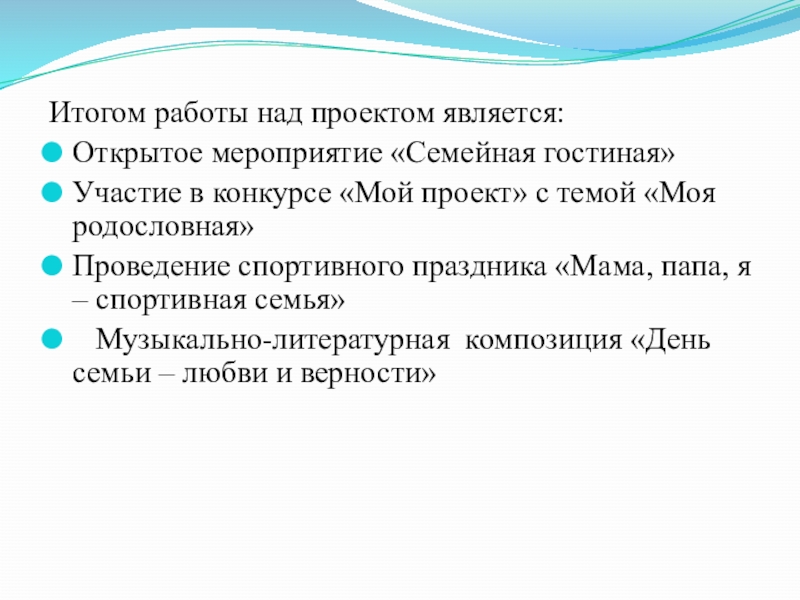 Слайд 20Итогом работы над проектом является: