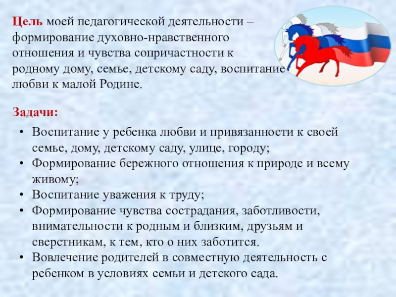 Воспитание у ребенка любви и привязанности к своей семье, дому, детскому саду, улице, городу;