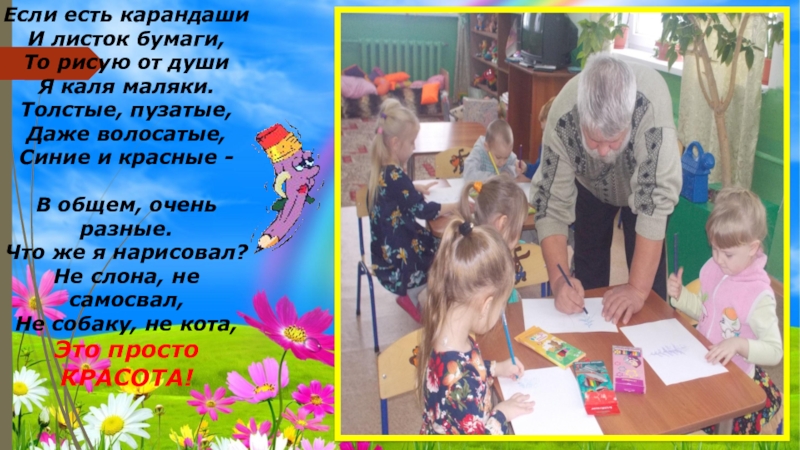 Слайд 2Если есть карандаши И листок бумаги, То рисую от души Я каля маляки. Толстые, пузатые, Даже