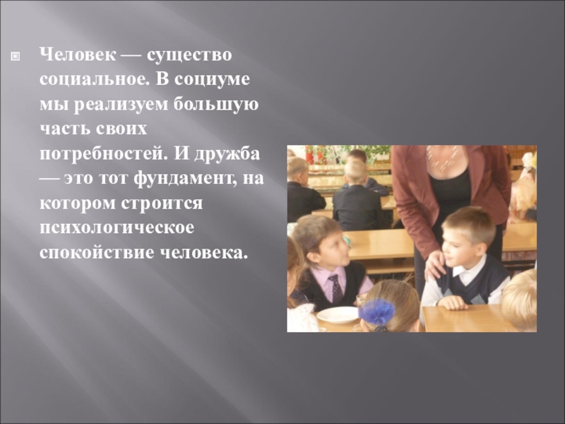 потребностей. И дружба — это тот фундамент, на котором строится психологическое спокойствие человека.