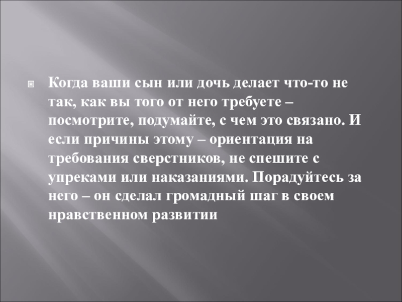 с норм поведения взрослых на нормы сверстников». Именно так называют это явление психологи, считая его одним из наиболее ярких показателей того, что ребенок становится подростком.