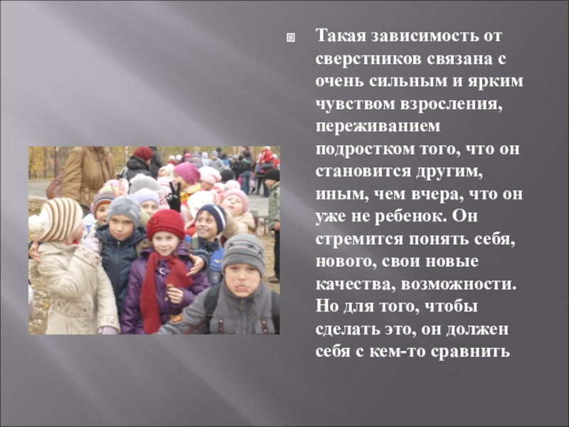 Такая зависимость от сверстников связана с очень сильным и ярким чувством