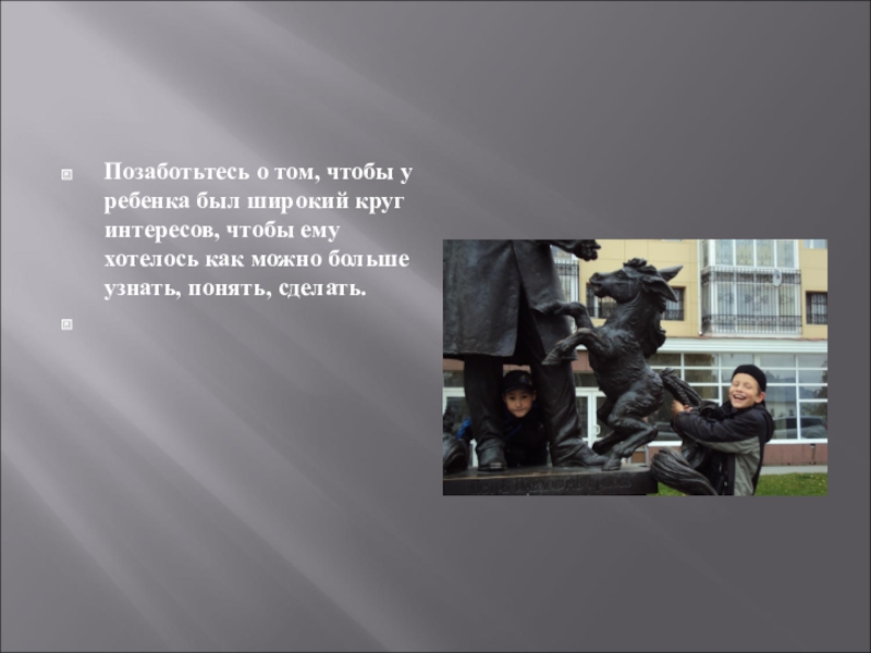 Позаботьтесь о том, чтобы у ребенка был широкий круг интересов, чтобы
