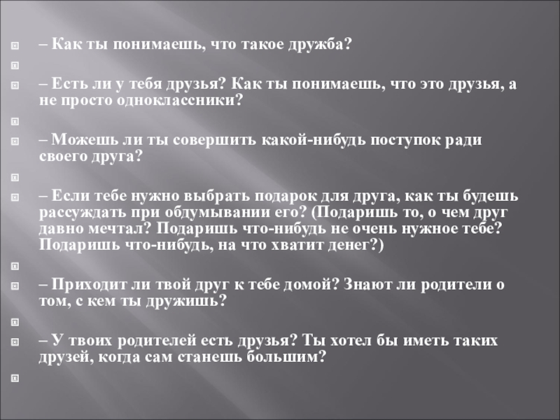 Слайд 22– Как ты понимаешь, что такое дружба?