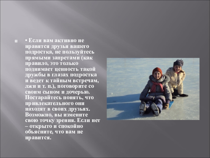 • Если вам активно не нравятся друзья вашего подростка, не пользуйтесь