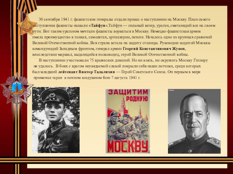 наступления фашисты назвали «Тайфун».Тайфун — сильный ветер, ураган, сметающий все на своем