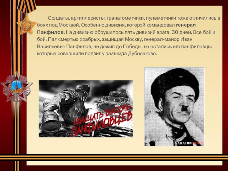 Васильевич Панфилов, не дожил до Победы, но остались его панфиловцы,