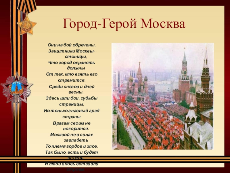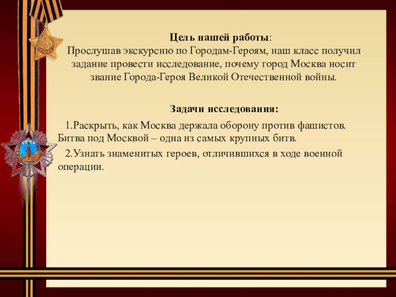 класс получил задание провести исследование, почему город Москва носит звание Города-Героя Великой Отечественной войны.