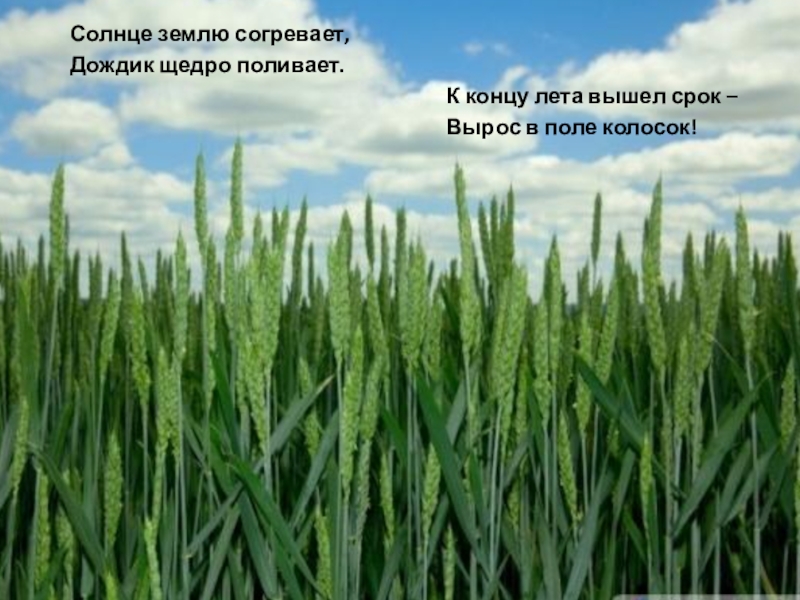 Слайд 2Вырос в поле колосок.