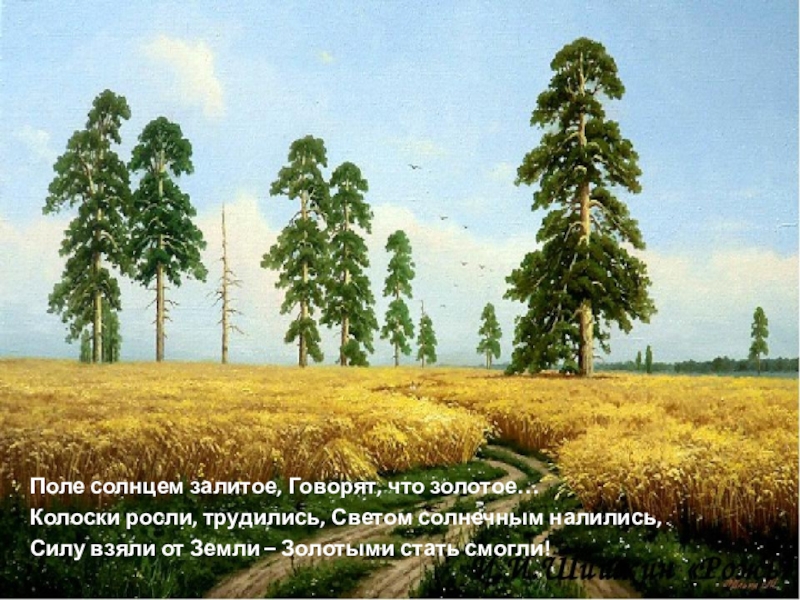 Слайд 8Поле солнцем залитое, Говорят, что золотое…